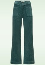 “Who needs a time machine when your pants already know what decade they’re in?” Ga voor een groovy seventies look met Cara! Uitgevoerd in een stevige maar stretchy corduroy katoenmix in blauwgroen die heerlijk draagt. * Hoge taille * Opgenaaide zakjes aan de voor- en achterzijde * Rits- en knoopsluiting voorzijde * Riemlussen * Lange, wijde pijp