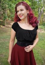 Deze prachtige 50s Be Free Jersey Top in Rood past in iedere garderobe… of je nu een Pin-Up Girl, Rockabella of Vintage Vixen bent! Ze heeft een ronde halslijn met een keyhole en strikdetail en schattige opengewerkte kapmouwtjes. Uitgevoerd in heerlijk soepel en stretchy katoen in lipstickrood dat zijn perfecte pasvorm zal blijven behouden, zelfs na een aantal wasbeurten. L-O-V-E! * Ronde halslijn * Keyhole * Strikdetail * Opengewerkte kapmouwtjes * Lang genoeg om op een normale heupbroek te dragen