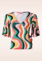 ”Babe, you look cool!” Belle heeft een V-halslijn met vast overslag effect, korte speelse vlindermouwtjes en een vast strikdetail in de taille. Ze is uitgevoerd in een stretchy, slinky en glanzend stofje voorzien van een kleurrijke geometrische print. * V-halslijn met (vast) overslag effect * Vast strikdetail * 1/2 vlindermouwtjes * Lang genoeg om op een normale heupbroek te dragen