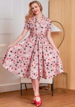 Bella Viva Las Vegas katoenen swing jurk in roze