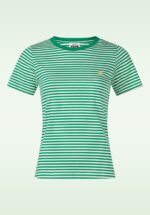 “Stripes go with everything!” Dit fantastische gestreepte T-shirt is super veelzijdig en een echte must-have voor het komende seizoen. Het heeft een hoge ronde halslijn, korte mouwen en is voorzien van een hartvormig borduursel op de voorzijde. Het draagt heerlijk luchtig en voelt natuurlijk aan dankzij het biologische katoen, een milieuvriendelijkere variant die onder betere en veiligere arbeidsomstandigheden geproduceerd wordt. * Hoge ronde halslijn * Korte mouwen * Lang genoeg om op een heupbroek te dragen