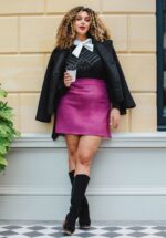 ”Be a go getter in faux leather!” Edith wordt hoog in de taille gedragen vanwaar ze uitloopt in een speels A-lijntje. Uitgevoerd in soepel en zacht, paars imitatie suède met een fijne stretch. * A-lijn * Blinde rits achterzijde * Valt bij een lengte van 1,70 m boven de knie * Yoëlle is 1,78 m * Let op; de kleur van het product op de video kan afwijken van de daadwerkelijke kleur van het product