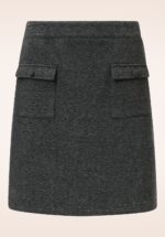 ”Casual daytime chic!” Ze wordt hoog in de taille gedragen en loopt uit in een flatterend A-lijntje met zakjes aan de voorzijde. Ze is uitgevoerd in een iets dikkere, maar toch zachte, donkergrijze stof met een lichte stretch en een visgraatpatroon. Hoe ga jij Anna stylen?! * A-lijn * Zakjes voorzijde * Ritssluiting achterzijde * Valt bij een lengte van 1,70 m boven de knie