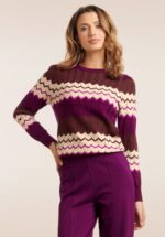 “Soft hues, strong style.” Zoe straalt subtiele elegantie uit met haar fijngebreide zigzagpatroon in warme bruin- en paarstinten. Ze heeft subtiele pofmouwen en een prachtig opengewerkt design dat zorgt voor een speelse, vrouwelijke touch. Uitgevoerd in een zachte, fijngebreide en stretchy viscosemix die soepel valt en heerlijk comfortabel draagt. * Hoge halslijn * Subtiele pofmouwen * Stretchy ribboord * Lang genoeg om op een normale heupbroek te dragen