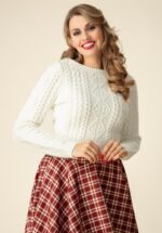 “Cable-knit comfort, styled in white.” Dit truitje heeft een elegante boothals, lange mouwtjes en is uitgevoerd in een dikke, maar zachte en stretchy, kabel gebreide stof in ivoorwit. * Lange mouwen * Boothals * Stretchy ribboord * Ietwat korter model * Let op; de kleur van het product op de video kan afwijken van de daadwerkelijke kleur van het product