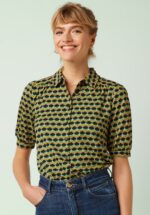 “De combinatiemogelijkheden zijn eindeloos met Carina!” Deze tijdloze beauty heeft een puntig kraagje, 1/2 pofmouwtjes en een elegante knopenreeks aan de voorzijde. Ze is uitgevoerd in een zachte, soepele en stretchy EcoVero viscosemix in zwart met een geometrische print in groentinten— een genot om te dragen! * Puntig kraagje * 1/2 pofmouwen * Reeks knopen voorzijde * Lang genoeg om op een normale heupbroek te dragen