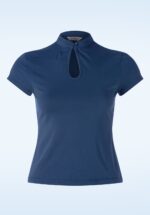 In deze top ben jij een echte femme fatale! Uitgevoerd in soepele, marineblauwe katoen met een heerlijke stretch voor een perfecte pasvorm. Spice it up or keep it classy, kunnen we niet allemaal een beetje “Mandarin” in ons leven gebruiken? * Knoopje * Lang genoeg om op een normale heupbroek te dragen
