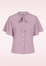 ”Lilac and lovely!” Deze prachtige May Wave blouse in lila is een must-have dit seizoen! Ze heeft speelse vaste strikbanden in de hals, korte vlindermouwtjes en schattige parelmoer knoopjes in de vorm van hartjes. Ze is uitgevoerd in een luchtige en soepele lila gekleurde 100% viscose voorzien van een subtiel all-over patroon van golfjes. * Vaste strikbanden * Korte vlindermouwtjes * Knopenrij * Lang genoeg om op een normale heupbroek te dragen