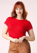 “Designed to be noticed.” Deze Maddy top van Topvintage Boutique is exclusief ontworpen door onze eigen in-house designers en alleen bij Topvintage verkrijgbaar. Ze heeft een hoge, ronde halslijn en korte kapmouwtjes die speels zijn afgewerkt met roze randjes. Gemaakt van een fijngebreide viscosemix in een warme rode tint, zacht, soepel en comfortabel om te dragen. * Ronde halslijn * Korte kap mouwtjes * Lang genoeg om op een normale heupbroek te dragen * Exclusief bij Topvintage verkrijgbaar