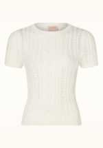 “Light, breathable, and endlessly wearable; spring knit perfection.” Lianne is door onze eigen in-house designers ontworpen en exclusief bij Topvintage verkrijgbaar! Ze heeft een hoge, ronde halslijn, korte mouwtjes en is uitgevoerd in een heerlijk zachte en stretchy, grofgebreide, katoenmix in gebroken wit met een ingewerkt patroon. “Soft knit. Easy style.” * Ronde halslijn * Korte mouwtjes * Stretchy ribboorden * Lang genoeg om op een normale heupbroek te dragen * Exclusief bij Topvintage verkrijgbaar