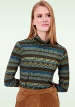 ”As if knitted from the forest floor – warm, whimsical and wild!” Knitted Amira is door onze eigen in-house designers ontworpen en exclusief bij Topvintage verkrijgbaar! Ze is uitgevoerd in een heerlijk zachte en stretchy, fijngebreide viscosemix in bosgroen, met grafisch printje en paddenstoelen. ”Cute and comfy” * Ietwat lagere, ronde halslijn * 1/2 mouwen * Stretchy ribboorden * Lang genoeg om op een normale heupbroek te dragen * Exclusief bij Topvintage verkrijgbaar