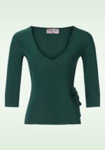 Elegant en schattig deze 50s Addicted Sweater in Forest Green! Eenvoudig maar toch speciaal door de lieflijke details! De top heeft een mooie ”slash” halslijn en flatterende 3/4 mouwtjes met splitjes die afgezet zijn met kleine vaste strikjes, só cute! Uitgevoerd in een heerlijke soepele, stretchy donkergroene viscosemix die zijn perfecte pasvorm zal blijven behouden, zelfs na een aantal wasbeurten. Een veelzijdige classy top die niet mag ontbreken in de kast van iedere vintage lady, de naam zegt al genoeg; wij zijn addicted! * ‘Slash’ hals * 3/4 mouwen met strikjes * Lang genoeg om op een normale heupbroek te dragen