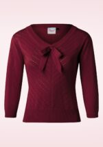 Elegant en schattig deze 50s Addicted Sweater in Burgundy van Banned! Eenvoudig maar toch speciaal door de lieflijke details! De top heeft een mooie slash halslijn en flatterende 3/4 mouwtjes met splitjes die afgezet zijn met kleine vaste strikjes, só cute! Uitgevoerd in een heerlijke soepele, stretchy bordeauxrode viscosemix die zijn perfecte pasvorm zal blijven behouden, zelfs na een aantal wasbeurten. Een veelzijdige classy top die niet mag ontbreken in de kast van iedere vintage lady, de naam zegt al genoeg; wij zijn addicted! * ‘Slash’ hals * 3/4 mouwen met strikjes * Lang genoeg om op een normale heupbroek te dragen