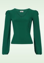 “Puff sleeves: because flat is boring!” Juno is super veelzijdig en onmisbaar in je garderobe dit seizoen! Ze heeft een elegante V-halslijn, speelse lange pofmouwen en is uitgevoerd in een stretchy en slinky, glanzend bosgroen stofje, waardoor ze een genot is om te dragen. * V-halslijn * Gevoerd * Lange pofmouwen met elastiek * Lang genoeg om op een normale heupbroek te dragen * Exclusief bij Topvintage verkrijgbaar