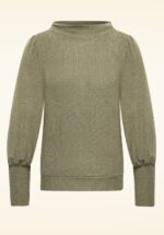 “Cozy chic with a sparkling twist!” Deze gebreide top is een perfecte mix van comfort en glamour. Ze heeft een elegante hoge opstaande kraag en lange, volumineuze bisschopsmouwen, terwijl het opengewerkte patroon en de subtiel ingewerkte glitterdraad zorgen voor een sprankelende touch. Uitgevoerd in een zachte, acrylmix met een vleugje wol en mohair die stretchy is en heerlijk comfortabel draagt. Perfect voor dagen waarop je cozy wilt zijn, maar toch wilt schitteren. * Opstaande kraag * Lange bisschopsmouwen * Opengewerkt patroon * Ingewerkte glitterdraad * Stretchy ribboord * Lang genoeg om op een normale heupbroek te dragen