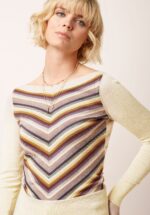 Deze Ivy Mercury top is de perfecte match met een retro rok of broek! Uitgevoerd in een soepele en stretchy bio katoenmix voorzien van kleurrijke strepen en een ingewerkte glitterdraad. Zie jij alle fantastische combi’s al voor je? 😉 * Boothals * Lange mouwen * Stretchy ribboorden * Lang genoeg om op een normale heupbroek te dragen