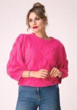 “Cozy sweater season is upon us!” 😉 Deze cutie heeft een ronde halslijn en 3/4 pofmouwen. Ze is uitgevoerd in een super zachte, warme en grofgebreide fuchsiaroze stofmix met een opengewerkt patroon. * Loose fit * Ronde halslijn * 3/4 pofmouwen * Stretchy ribboord * Lang genoeg om op een mid-waist broek te dragen