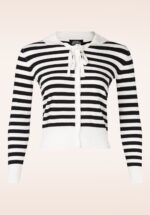 The Monroe Classic is zo’n vestje dat nooit uit de mode raakt! De sierlijk afgeronde kraag met speelse, vaste strikbandjes geeft haar een charmant accent, terwijl de lange mouwen zorgen voor een elegante finishing touch. Ze is uitgevoerd in een soepele, fijngebreide en stretchy viscosemix met een stijlvol zwart-wit gestreept patroon dat moeiteloos klasse uitstraalt. * Afgeronde kraag * Vaste strikbandjes * Lange mouwen * Knopenreeks * Lang genoeg om op een normale heupbroek te dragen