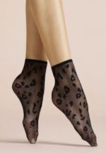 ”Roarrr”… zouden je voeten zeggen als ze konden spreken! Want met deze 50s Doria Leopard Spot Socks in Black geef jij iedere outfit een sassy touch! Deze enkelhoge 8 denier kousen zijn gemaakt van een kwalitatief hoogwaardig, zwart stofje met een leopard print in zwart. Ze mogen gezien worden en zijn dan ook super leuk in combinatie met een paar mooie pumps, sneakers, een rok of een jurkje. ”Take a walk on the wild side!” * 8 denier * One size * Enkelhoog