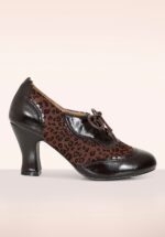”Call me shoe-perficial… I don’t care!” 😉 Deze shoe booties met Louis stijl hak zijn uitgevoerd in een combinatie van glanzend donkerbruin imitatie leder en een leopard print suèdine stofje met geschulpte biesjes en een handige striksluiting. * Rond neusje * Striksluiting * Stevig hakje in Louis stijl * Comfy binnenzool * Anti-slip zool