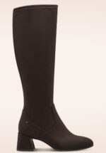 “The higher the boot, the bolder the move.” Deze laarzen reiken tot onder de knie en zijn uitgevoerd in zwart vegan suède met een stevige blokhak en een vast ‘riempje’. * Kniehoge laarzen * Stevige blokhak * Comfy (Touch-it) voetbed * Rits aan binnenzijde * Licht elastische schacht * Anti-slip zool * Vegan approved!