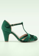 Sergi fluwelen T-strap pumps in smaragdgroen