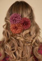 Haarbloemenset in Arabesque oranje, mauve en roestrood