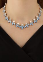 “Simplicity is the ultimate sophistication!” Een elegante, korte, vergulde ketting bezet met lichtblauwe glaskristallen, kunstpareltjes en strass steentjes. * Verstelbare ketting met karabijnsluiting * Verguld * Glaskristal * Kunstpareltje * Strass * Nikkelvrij * Match met de bijpassende oorbellen voor een complete look