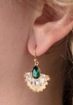 Een paar prachtige oorbellen zoals deze 20s Crystal Fan Drop Earrings in Gold and Green kunnen je vintage (party) look naar een hoger niveau tillen! Deze sierlijke goudkleurige waaiertjes in art-deco stijl zijn bezet met enkele fonkelende glas kristalletjes en een grotere druppelvormige ‘faux’ diamant in smaragdgroen, wow! Wij zijn al helemaal fan van deze waaiertjes 😉 * Goudkleurig metaal * Glaskristal * Hangertjes