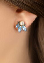 “Simplicity is the ultimate sophistication!” Elegante, vergulde, bloemvormige oorstekertjes bezet met lichtblauwe glaskristallen, een prachtig kunstpareltje en strass steentjes. * Verguld * Glaskristal * Kunstpareltje * Strass * Nikkelvrij * Match met de bijpassende ketting voor een complete look