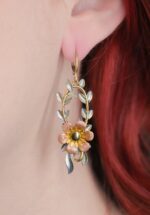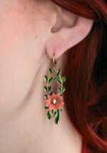 ”Bloom baby, bloom!” Deze handgemaakte oorbellen met antieke uitstraling zijn uitgevoerd in verguld messing voorzien van een bloemvormige hanger, die handbeschilderd en geglazuurd is in hun eigen atelier in Eindhoven. * Ringetjes met scharniersluiting * Verguld messing * Slijtvaste kleuren * Nikkelvrij (anti-allergeen) * Wordt geleverd in een leuk doosje