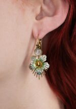 ”Soft blooms. Big shine.” Deze elegante oorbellen zijn uitgevoerd in goudkleurig metaal en voorzien van bloem- en druppelvormige, facet geslepen ‘faux’ diamantjes in mint en pasteltinten. * Goudkleurig onedel metaal * ‘Faux’ diamantjes * Stekers met stoppertjes * Nikkelvrij