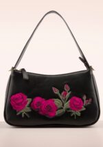 ”Roses are red, violets are blue, we think this bag was just made for you!” Deze romantische handtas is uitgevoerd in zwart kunstleder en voorzien van geborduurde rozen. Liefde op het eerste gezicht! * Imitatieleder * Goudkleurige details * Kort hengsel * Los, lang, verstelbaar hengsel * Kan crossbody gedragen worden * Binnenvak met 3 extra vakjes, waarvan 1 met rits * Vak met rits op de achterzijde * Volledig gevoerd met een magentakleurig stofje * Groot genoeg voor je portemonnee, telefoon, sleutels en je favoriete lippenstift