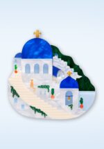 ”Whitewashed walls, blue-domed chapels, and a sky melting into the sea. Santorini holds its breath at sunset, just for a moment, and the world pauses too.” * Online in Nederland, Duitsland en België exclusief bij Topvintage verkrijgbaar * Handgemaakt, handbeschilderd en uitgevoerd in verschillende lagen hars * Zilverkleurige pinsluiting * ”A Greek Odyssey” collectie * Original design by Shea O’Connor