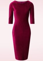 Topvintage exclusive ~ Laura Pleated Velvet pencil jurk in wijnrood