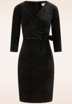 Topvintage exclusive ~ Fiona Velvet Glitter pencil jurk in zwart
