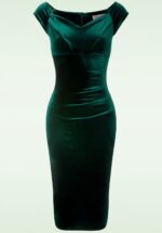 Topvintage exclusive ~ Lynn fluwelen penciljurk in flessengroen