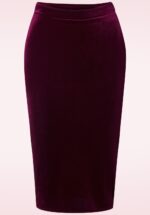 Met deze sexy en stijlvolle pencil rok ben je helemaal party-proof! Dit model sluit prachtig aan waardoor jouw rondingen perfect worden benadrukt. Uitgevoerd in een stretchy, bordeauxrode fluwelen stof die je rondingen prachtig benadrukt zonder af te tekenen. Deze rok komt wel met een waarschuwing; ze is namelijk hot, hot hot! * Aansluitend taillemodel * Geen rits of knopen; aantrekken en ready to go! * Valt bij een lengte van 1,70 m over de knie * Exclusief bij Topvintage verkrijgbaar