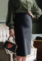 ”Simply chic!” Loreen is een elegant hoog taille model dat onmisbaar is in de kledingkast van iedere vrouw! Deze rok is gemaakt van een flatterende en stretchy, zwarte, bengaline-achtige viscosemix met een subtiele krijtstreep. Ze benadrukt je rondingen perfect, zonder af te tekenen. * Hoog taille model * Blinde rits achterzijde * Split aan de achterzijde * Valt over de knie bij een lengte van 1,70 m * Exclusief bij Topvintage verkrijgbaar
