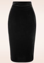 Topvintage exclusive ~ Glendie Velvet Pencil Rok in Zwart