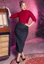 Met deze sexy en stijlvolle 50s Glendie Velvet Pencil Skirt in Navy ben je helemaal party-proof! Dit model sluit prachtig aan waardoor jouw rondingen perfect worden benadrukt. Uitgevoerd in een stretchy, navyblauwe fluwelen stof die je rondingen prachtig benadrukt zonder af te tekenen. Deze rok komt wel met een waarschuwing; ze is namelijk hot, hot hot! * Aansluitend taillemodel * Geen rits of knopen * Geen split * Exclusief bij Topvintage verkrijgbaar * Gorgeous brunette Yoëlle is 1,78 m