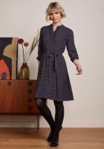 ”Je t’adore!” Deze cutie met polkadots is heerlijk om te dragen dankzij de soepele en luchtige EcoVero viscose, welke een milieuvriendelijk alternatief voor regulier viscose is. * A-lijn jurk * Niet gevoerd * Knoopjes voorzijde * 3/4 pofmouwtjes * Afneembare strikband voor een extra ‘snatched’ taille * Blinde rits aan de zijkant * Reikt bij een lengte van 1,70 m tot net boven de knie