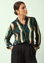 “A graphic vision, styled in eco-conscious elegance.” Maisie heeft een lossere pasvorm, lange pofmouwen en is uitgevoerd in dunne en soepele EcoVero viscose (stretcht niet) met een grafische retroprint. * Puntige kraag * Knopenrij * Lange pofmouwen * Lang genoeg om op een normale heupbroek te dragen