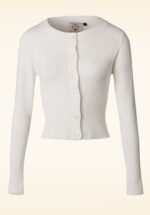 De 50s Dolly Cardigan in Ivory White maakt met iedere outfit een ‘perfect match’! Dolly is klassiek, comfortabel én speels. Deze cardigan heeft een elegante ronde halslijn, lange mouwen en grote glimmende knopen. Uitgevoerd in een fijngebreide, ivoorwitte stof met een heerlijke stretch voor een mooie aansluitende pasvorm. De combinatiemogelijkheden zijn eindeloos! * Ronde halslijn * Lange mouwen * Reeks knopen * Boordjes langs de halslijn, mouwen en onderkant * Lang genoeg om op een normale heupbroek te dragen
