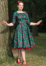 ”When your dress does the talking; soft petals, bold charm, and swingy grace in every step.” Deze swing beauty is exclusief bij Topvintage verkrijgbaar en door onze eigen in-house designers ontworpen. Uitgevoerd in een stevige maar soepel vallende, donkergroene katoenmix met een lichte stretch, voorzien van een unieke bloemenprint in rood. Ā * Full swing model * Boothals * 3/4 mouwen * Zijwaartse steekzakken * Combineer met een van onze petticoats voor een extra feestelijk effect * Blinde rits achterzijde * De print is door onze eigen in-house designers ontworpen * Valt bij een lengte van 1,70 m over de knie * Exclusief bij Topvintage verkrijgbaar