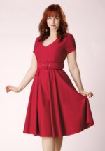 “Classic red, timeless flair.” Deze swing beauty Violetta is met liefde ontworpen door onze eigen in-house designers en exclusief bij Topvintage verkrijgbaar. Ze is uitgevoerd in een stevige, maar soepel vallende rode katoenmix met een fijne stretch voor een comfortabele en flatterende pasvorm. * Full swing model * V- halslijn * Korte mouwen * Zijwaartse steekzakken * Blinde rits achterzijde * Combineer met een van onze petticoats voor een extra feestelijk effect * Valt bij een lengte van 1,70 m over de knie * Exclusief bij Topvintage verkrijgbaar