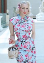 Je hart gaat sneller kloppen van deze Alice Blossom Pencil Dress in Blue! Schitterend pencil jurkje met een prachtige roze bloesem print en een schattig opstaand kraagje met druppelvormige uitsneden, we love it! Uitgevoerd in een lichtblauwe katoenmix met een lichte stretch en subtiele bloemenstructuur die je rondingen mooi volgt zonder af te tekenen. Liefde op het eerste gezicht! * Klein opstaand kraagje * Uitsneden bij de halslijn * Kapmouwtjes * Afneembaar stoffen riempje * Lichtblauwe biesjes * Blinde rits achterzijde * Split aan de achterzijde * Beautiful Rachel Ann Jensen is 1,66 m * De afgebeelde haarbloemen zijn niet verkrijgbaar in onze shop