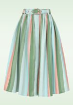 ”Colour me happy!” Deze beauty zwiert sierlijk met je mee bij elke stap en heeft een knopenreeks aan de voorzijde en handige steekzakken! Ze is uitgevoerd in een stevige, maar soepel vallende katoenmix voorzien van een kleurrijk streeppatroon. * Full swing model: kan gecombineerd worden met een petticoat * Afneembare riem, voor een extra ‘snatched’ taille * It has pockets! * Knopenreeks voorzijde * Valt bij een lengte van 1,70 m over de knie