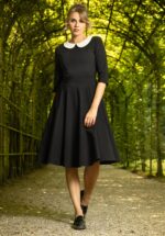 ”For tea at dusk and secrets after dark!” 😉 Deze op Wednesday Addams geïnspireerde swing beauty is exclusief bij Topvintage verkrijgbaar en is voorzien van een contrasterend Peter Pan kraagje in wit. Uitgevoerd in een stevige maar soepel vallende, stretchy zwarte stof die heerlijk draagt. Natuurlijk ontworpen door onze getalenteerde eigen in-house designers. ”Wednesday; the girl who made gloom fashionable!” * Swing model * Peter Pan kraagje * 3/4 mouwen * Zijwaartse steekzakken * Blinde rits achterzijde * Valt bij een lengte van 1,70 m over de knie * Exclusief bij Topvintage verkrijgbaar