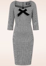 Topvintage Exclusive – Gillian Houndstooth pencil jurk in zwart en wit